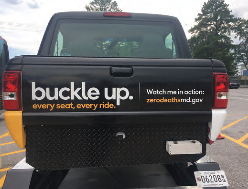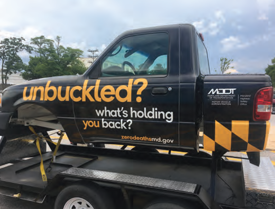 Led the design and production for the MDOT MVA's seat belt simulator truck graphic. The simulator, a refurbished 1998 Ford Ranger pickup, serves as a community educational tool to visually demonstrate the critical difference a properly buckled seat belt makes in a rollover crash.